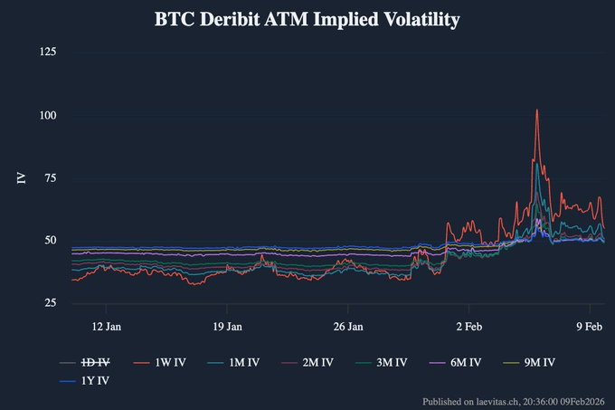 2월 5일, 데리빗(Deribit) 에서 비트코인(BTC) 코인(BTC) 옵션 24시간 거래량 사상 최고치인 14만 310계약을 기록했으며, 이 중 풋옵션이 8만 2080계약, 콜옵션이 5만 8230계약이었다. 이러한 옵션 거래량 급증은 급격한 시장 매도세와 맞물려 발생했는데, 비트코인(BTC) 2월 5일 약 15% 하락하여 6만 2000달러 부근까지 떨어졌고, 2월 6일에는 하락세가 지속되어 6만 달러까지 하락했다. 거래량 옵션 거래량은 역대 최고치를 경신했다.