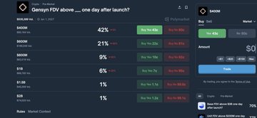 > 폴리마켓: Gensyn FDV는 43% 배당률로 $4억 이상, 거래량 $504,000입니다.