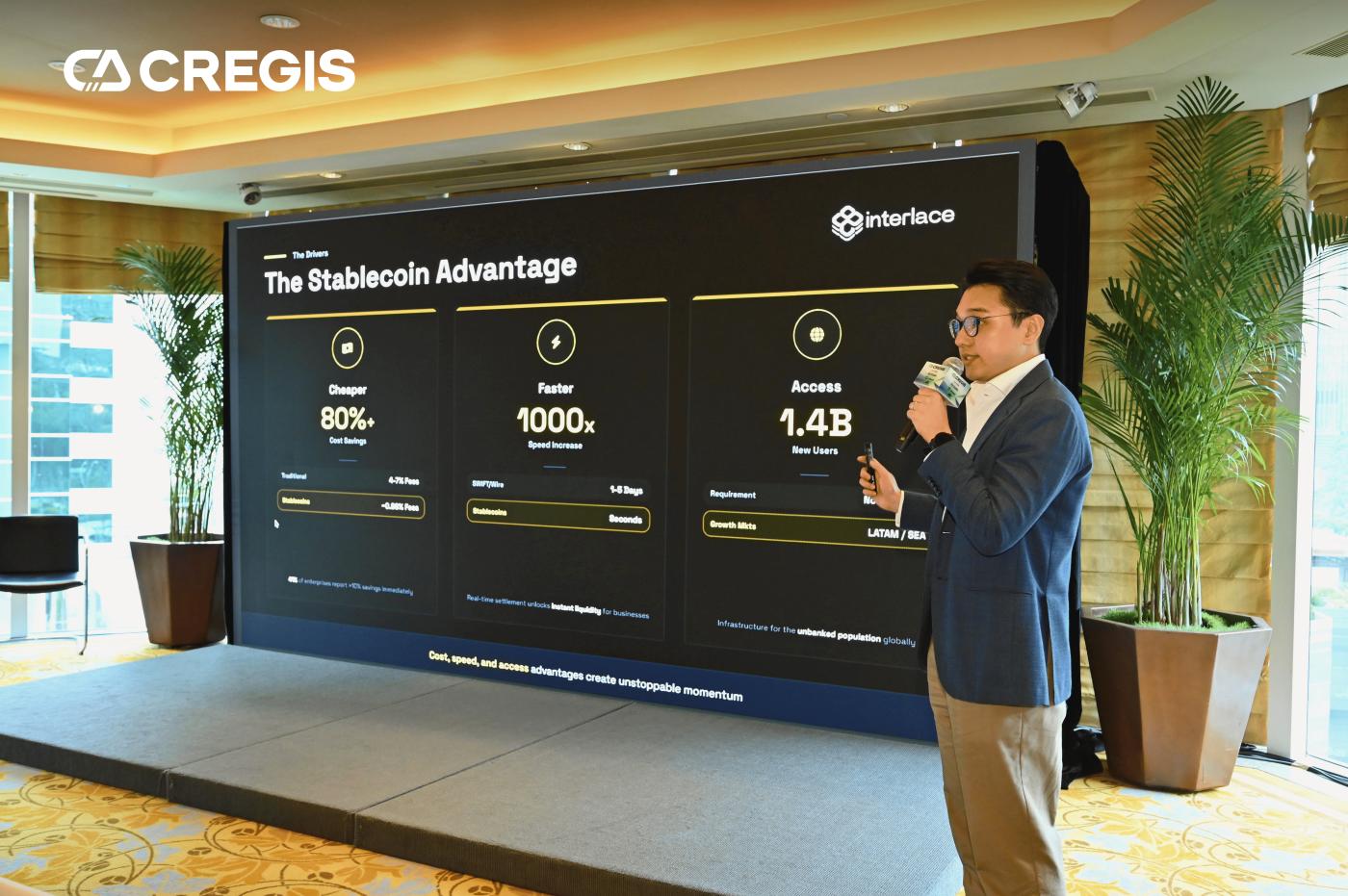 인터레이스의 전략 및 운영 책임자인 헨리 챈은 기조연설에서 현재 실물 결제에서 스테이블코인의 보급률이 약 1%에 불과하지만, 시장 규모는 향후 4년 동안 35조 달러에서 200조 달러로 성장할 것으로 예상되며, 특히 실물 결제 시나리오에서 100배의 성장 기회가 있다고 지적했습니다. 인터레이스는 카드 발급, 은행 계좌, QR 코드, 서비스형 지갑(wallet-as-a-service®), 자금 관리 및 가맹점 결제 기능을 원스톱 플랫폼으로 제공하며, 전 세계 7,000개 기업 고객에게 서비스를 제공하고 있습니다. 또한 유럽과 두바이에서 주요 라이선스를 획득하여 글로벌 확장의 기반을 마련했습니다.