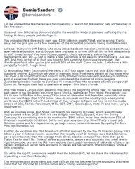 샌더스, 당신은 완전히 헛소리를 하고 있어요. 당신은 가난한 사람들에 대한 진정한 동정심이 전혀 없어요. 우리 부모님은 소련에서 미국으로 이민 오실 때 1인당 50달러밖에 없었어요. 그분들은 고된 육체노동을 하며 죽도록 일하셨고, 우리가 받은 가장 큰 자선은 재산세는 높지만 STEM 교육을 제공하는 좋은 학교가 있는 마을에 새 주택이 시세대로 지어진 것이었어요. 모든 억만장자에게 세금을 부과하고 그 돈을 나눠주는 건 자선이 아니에요. 우리 부모님이 그 돈을 받았다면, 그 동네에 사는 다른 노동자 계층 가족을 집에서 내쫓아야 했을 거예요. 당신은 다른 사람들에게는 이런 자선을 베풀기를 거부하는 거예요. 왜냐하면 그것은 진정한 희생을 요구하기 때문이죠. 당신이 버몬트에 실제로 더 많은 주택을 지었다면, 당신에게 투표한 사람들의 집값이 내려갔을 거예요. 당신이 버몬트에 실제로 더 많은 병원을 지었다면, 당신에게 투표한 사람들이 의료비로 청구할 수 있는 금액이 낮아졌을 거예요. 가난한 사람들을 돕는다는 것은 순부(誘富)를 창출하는 것을 의미해요. 순부(誘富)를 창출한다는 것은 희생을 요구해요. 부가 더 많아지면, 부를 축적하는 사람들은 그만큼 비싸게 팔 수 없게 되니까요. 그러니까 실제로 빈곤층을 실질적으로 돕는다는 공약으로는 선거 운동을 할 수 없고, 오직 부자들을 처벌한다는 공약으로만 선거 운동을 할 수 있다는 거죠.