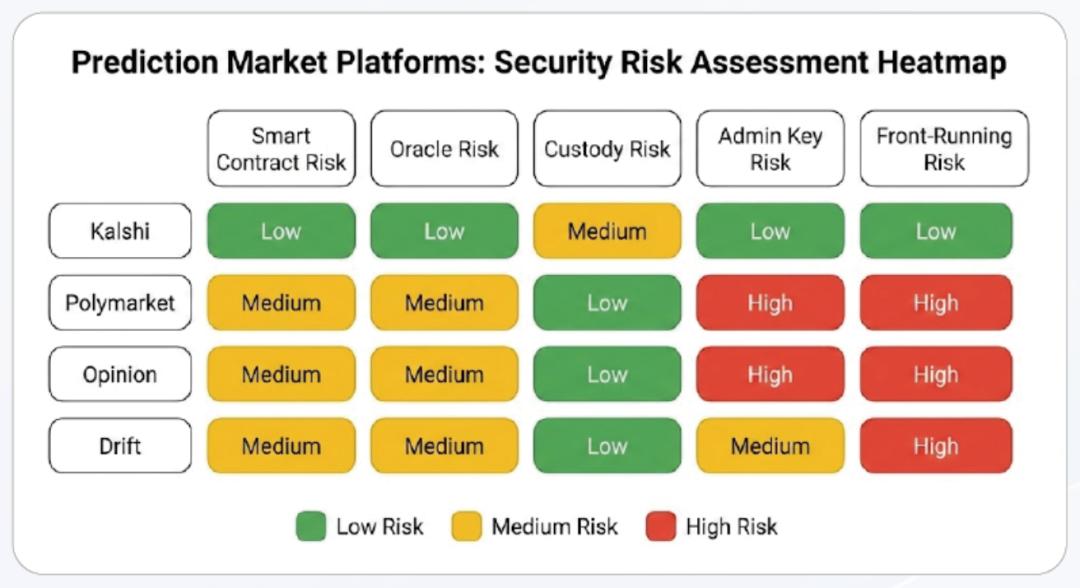 예측 시장이 개인 투자자 투기 플랫폼에서 "불확실성 가격 결정 인프라"로 진화함에 따라, 시장의 보안과 신뢰성은 업계의 미래 방향을 결정하는 핵심 요소가 되고 있습니다. 업계가 직면한 보안 문제는 단일 스마트 계약 리스크 에서 오라클 메커니즘, 관리자 권한 관리, 하이브리드 웹2 및 웹3 아키텍처를 포괄하는 시스템적 문제로 확대되었습니다.
