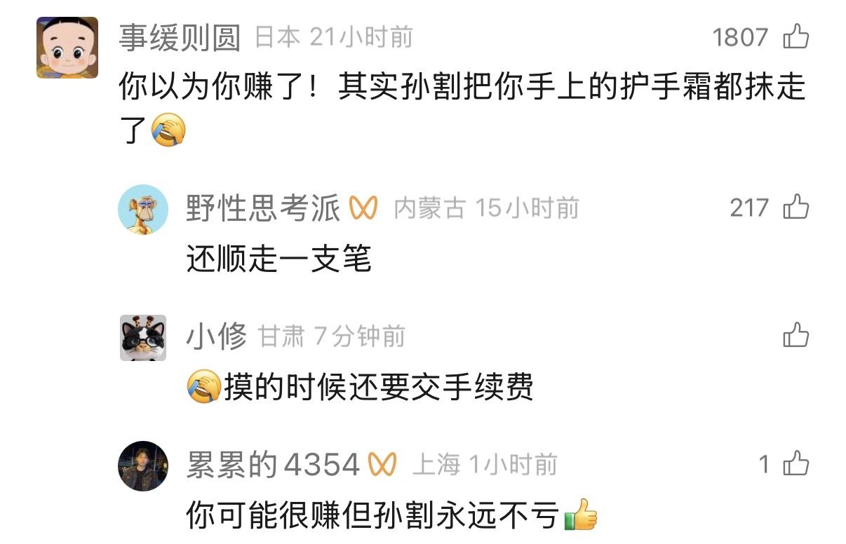 하지만 네티즌들은 신랄하게 비판했습니다. "티셔츠랑 사인 하나 얻었다고 생각하겠지만, 사실 쑨 형님이 얻은 건 펜이랑 핸드크림이야." 돈은 많이 벌었을지 몰라도 쑨 형님은 절대 손해 보는 법이 없지!