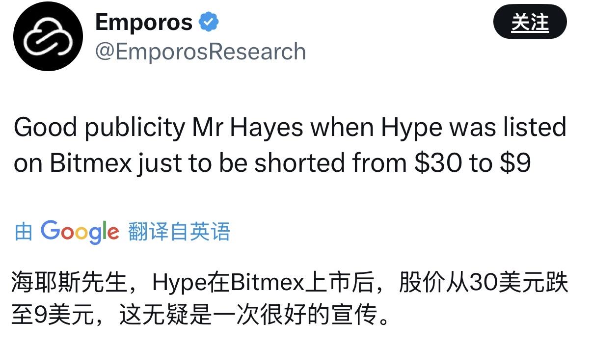 한 네티즌은 "헤이즈 씨, 비트멕스에 HYPE가 상장된 후 가격이 30달러에서 9달러로 떨어졌는데, 혹시 새로운 '홍보 전략'인가요? 🤔"라고 댓글을 달았습니다.