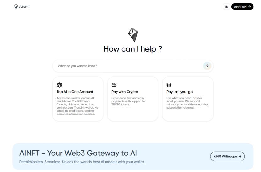 AINFT는 공식 백서 에서 밝힌 바와 같이, TRON 생태계의 AI 인프라 및 AI 에이전트 혁신 센터가 되어 "Web3 AI 서비스"를 위한 원스톱 진입점을 구축하는 것을 핵심 목표로 삼고 있습니다. 현재 출시된 AI 대규모 모델 통합 플랫폼은 생태계 구축의 시작점에 불과하며, AINFT는 앞으로 더욱 다양화된 AI 제품을 지속적으로 출시하여 TRON 생태계의 지능화를 더욱 촉진할 계획입니다.