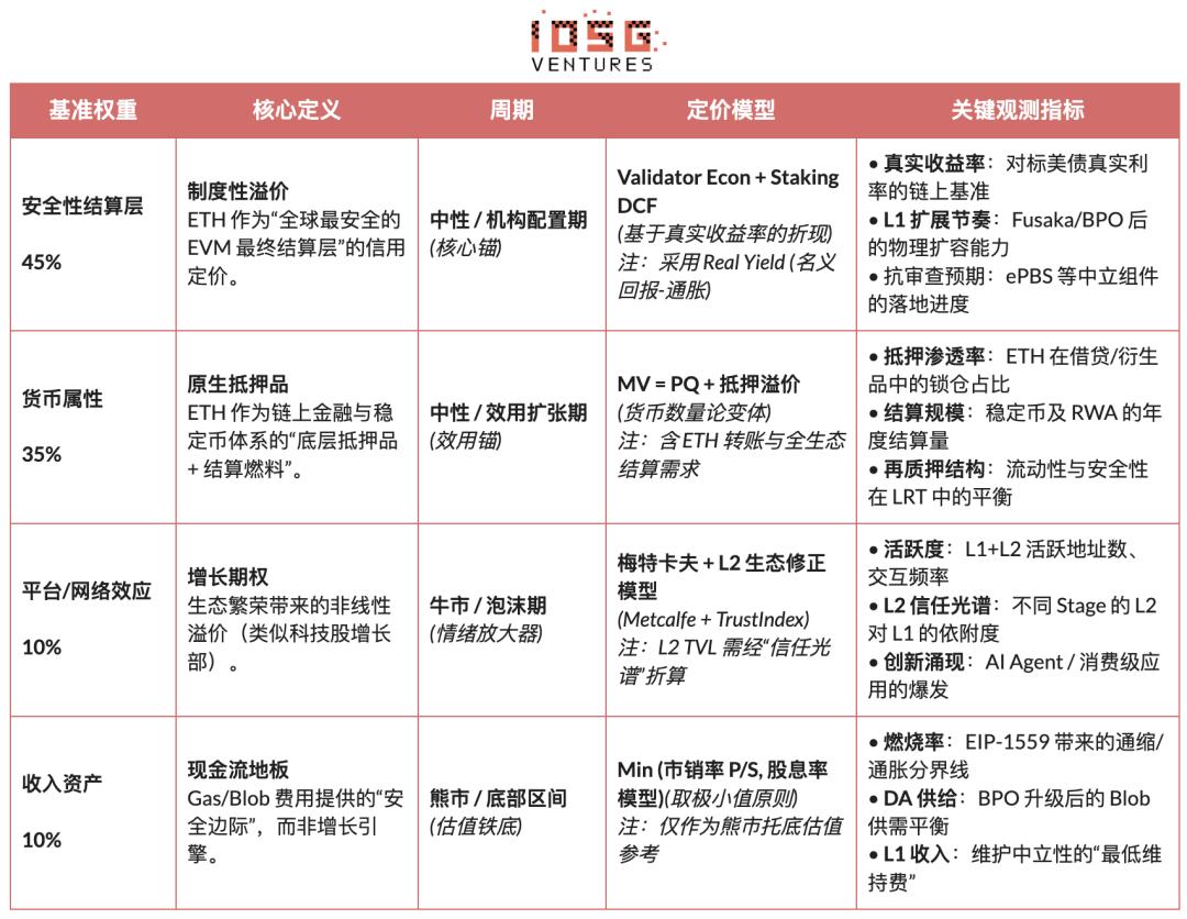 • 가치 평가 프레임 의 구조적 변화 : 보안 및 기관 신뢰도의 비중이 크게 상승 반면, 거래 수수료 및 플랫폼 효과의 비중은 감소했습니다. 이더리움 가격 책정 방식이 현금 흐름 모델에서 자산 프리미엄 모델로 전환되고 있습니다.