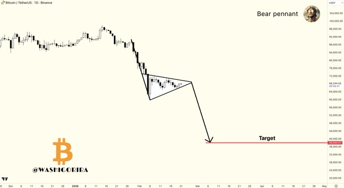 #비트코인 베어 페넌트 패턴이 형성되고 있습니다.