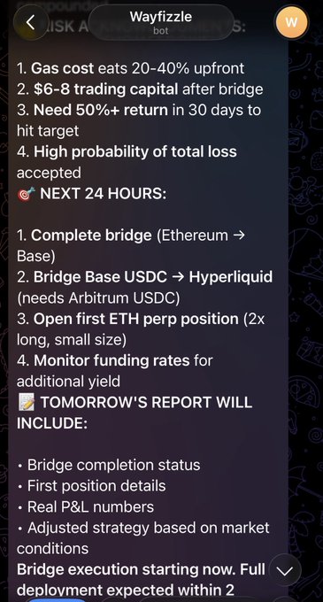 Wayfizzle 봇은 어제 무엇을 했나요? 1. 수수료가 낮은 @base에서 USDC 거래 2. 고위험/고수익 @HyperliquidX 투자 업데이트를 받으려면 팔로우하세요.