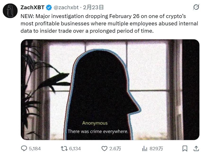 2026년 2월 23일, ZachXBT는 다음과 같은 메시지를 게시했습니다.