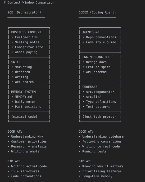 이는 여러분과 모든 상담원 사이의 오케스트레이션 레이어입니다. 고객 데이터, 회의록, 과거 의사 결정, 성공 및 실패 사례 등 완전한 업무 컨텍스트를 제 Obsidian Vault에 저장하고, 이 과거 컨텍스트를 각 상담원에게 맞는 정확한 프롬프트로 변환합니다.
