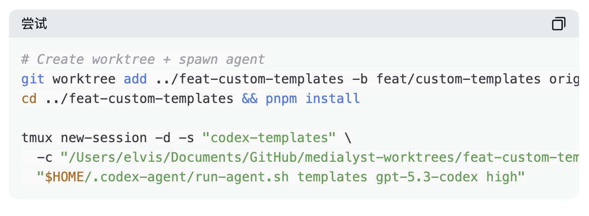 각 에이전트는 자체적인 독립적인 작업 트리와 tmux 세션을 갖습니다.