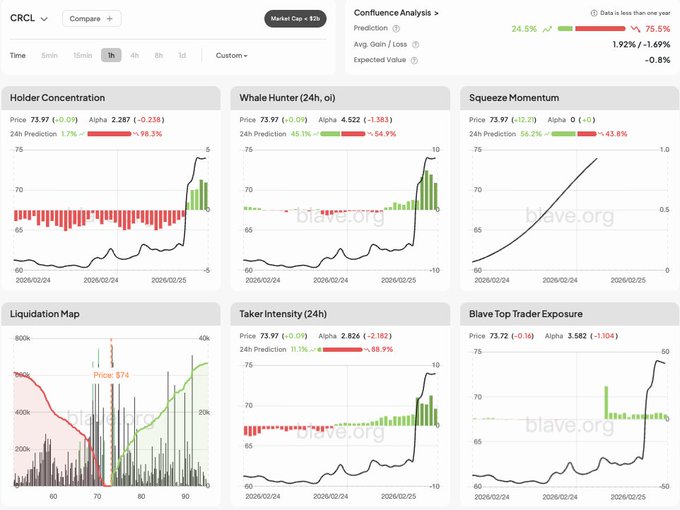 2️⃣ 청산 지도에서 여러 개의 대규모 숏 포지션을 75.8 레벨까지 정리할 수 있음을 보여줍니다...