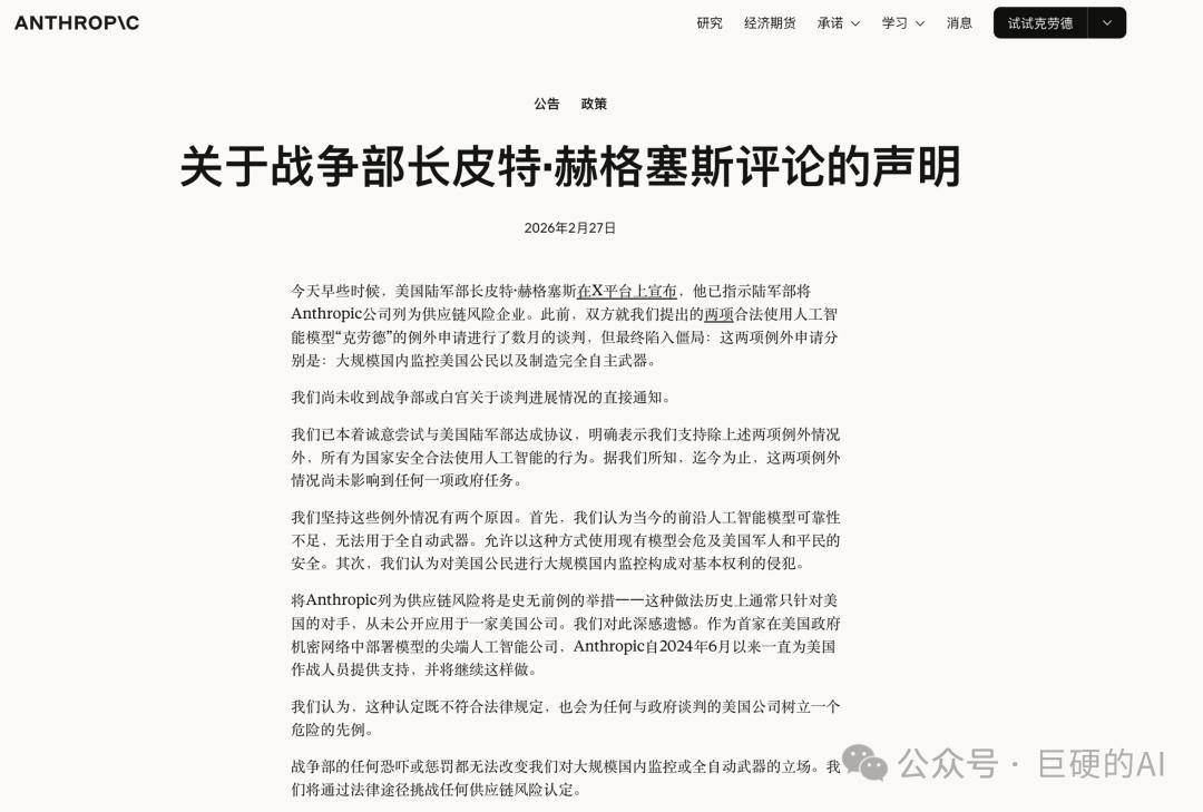하지만 인공지능이 하메네이를 제거하는 과정은 미국 내에서 인공지능 윤리에 대한 격렬한 논쟁을 불러일으켰습니다. 이 논쟁의 핵심은 앤트로픽사가 개발한 최상위 인공지능 모델인 클로드였습니다.