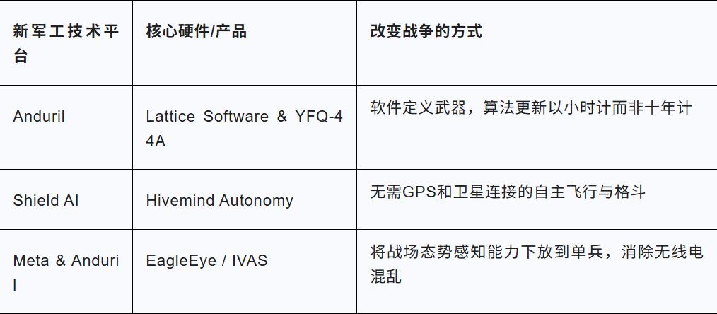 이 헤드셋은 더 이상 부피가 큰 방탄 헬멧이 아니라 Lattice 네트워크의 모든 데이터를 통합하는 홀로그램 디스플레이 시스템입니다. 병사들은 적의 골격 구조, 가려진 목표물의 윤곽을 직접 볼 수 있을 뿐 아니라 드론에서 전송되는 실시간 영상까지 헤드셋을 통해 확인할 수 있습니다.35 Palmer Luckey는 이를 "병사를 위한 디지털 팀원"이라고 부르며, 최전선에서 싸우는 모든 이에게 펜타곤과 동기화된 신의 시점을 제공한다고 설명합니다.