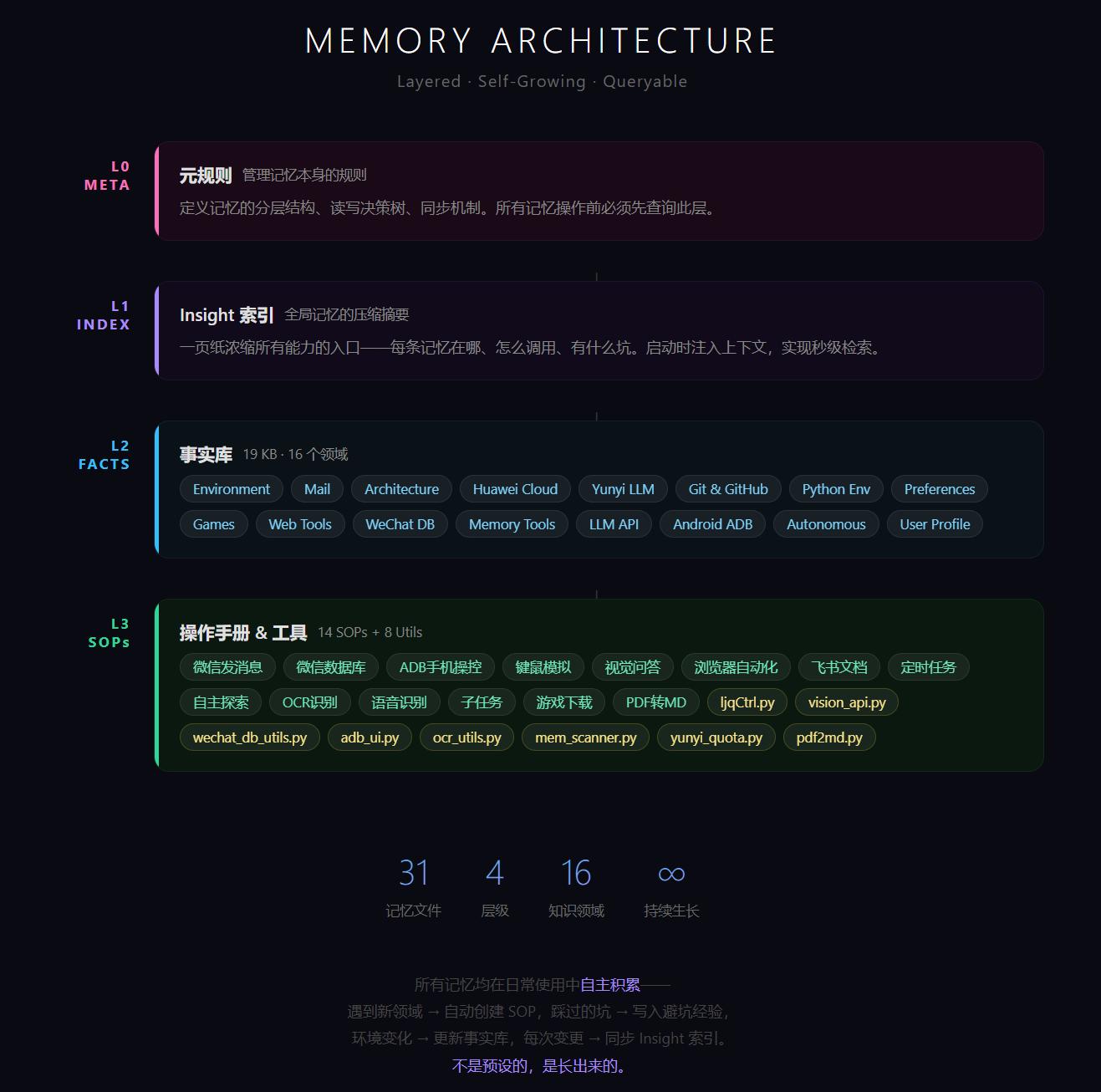 설치가 번거롭고, 한계가 있으며, 마이그레이션이 어려운 기존의 지능형 에이전트와는 다릅니다. 차세대 자율 조직화, 자율 학습, 자율 진화 기능을 갖춘 범용 지능형 에이전트입니다. 사용자의 안내에 따라 빠르게 학습하고 성장하는, 마치 '생명'과 같은 디지털 생명체입니다. 이 시스템은 2026년 1월 11일부터 오픈 소스로 공개되었습니다(https://github.com/lsdefine/pc-agent-loop).