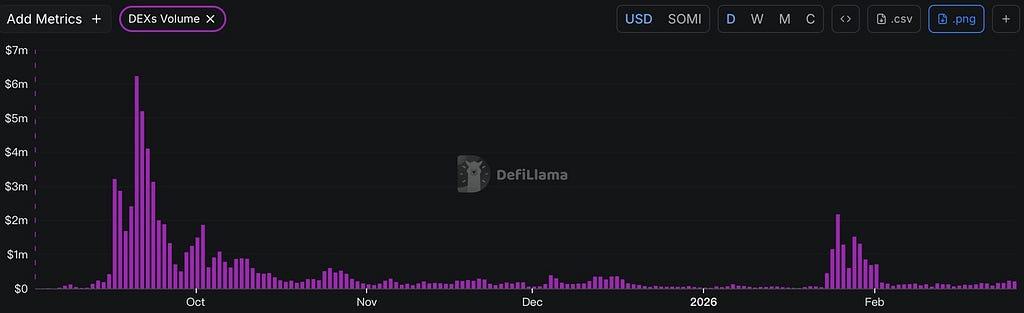 - 시장 흡수 능력이 심각하게 부족함: SOMI 토큰의 일일 평균 거래량 약 150만 달러에 불과합니다. 발행량 875만 개에 비해 시장 유동성이 신규 공급량을 효과적으로 흡수하지 못해 상당한 매도 압력이 발생하고 있습니다.