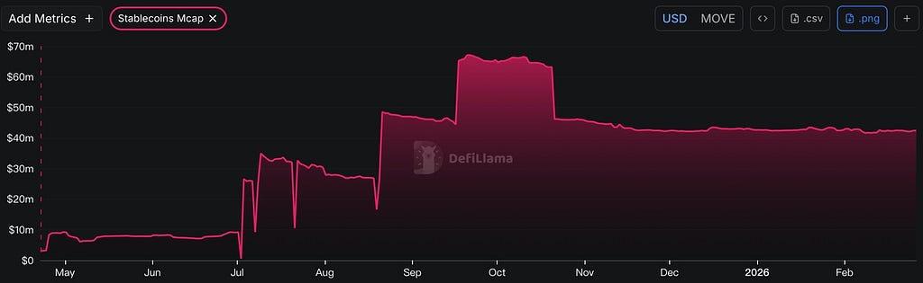 - 스테이블코인 시가총액 지속적인 감소: 온체인 스테이블코인 시가총액이 6,709만 달러에서 4,100만 달러로 38.88% 감소했습니다. 이는 무브먼트 생태계에서 지속적인 자본 유출이 발생하고 있으며 시장 신뢰도가 약화되고 있음을 나타냅니다.