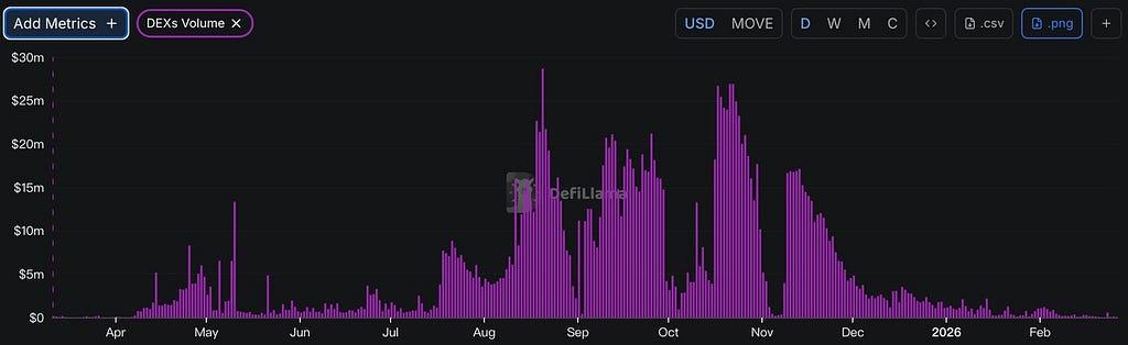 - 온체인 활동 중단: 온체인 수수료 데이터에 따르면 Movement의 일일 거래 수수료가 최근 0에 도달했으며, 이는 온체인 활동이 완전히 중단되었음을 직접적으로 반영합니다.