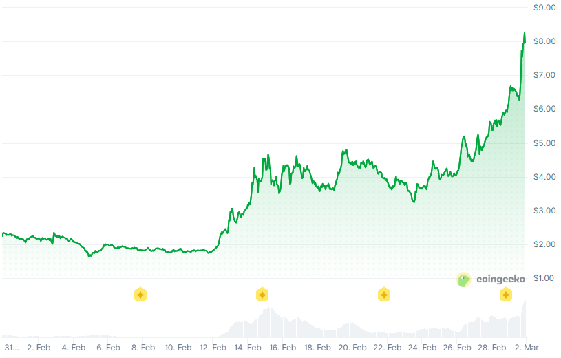 Voorhees가 Venice가 최근 OpenAI에 10억 달러에 인수된 오픈소스 자율 AI 에이전트 플랫폼인 OpenClaw의 추천 모델 제공업체라고 밝힌 후, VVV 토큰은 오늘 35% 급등하여 완전 희석 가치(FDV) 6억 4천만 달러를 기록했습니다.