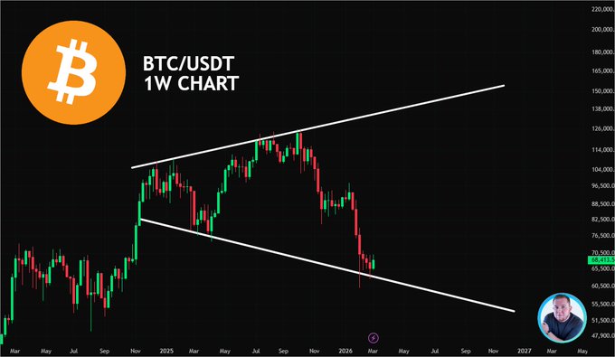 CryptoJack03-03이 기사는 기계로 번역되었습니다원문 표시# 비트코인(BTC) 은 확장형 쐐기형 패턴 내에서 거래되고 있습니다확장형 쐐기형 패턴은 궁극적인 변동성 엔진이며, 돌파는 매우 격렬할 것입니다.섹터:Halving 토큰레이어 1Twitter에서면책조항: 상기 내용은 작자의 개인적인 의견입니다. 따라서 이는 Followin의 입장과 무관하며 Followin과 관련된 어떠한 투자 제안도 구성하지 않습니다.라이크즐겨찾기에 추가 코멘트공유관련 콘텐츠CoinDesk다섯 개의 데이터 소스가 비트코인 시장에 대해 동일한 의견을 제시합니다. 내부에서부터 유동성이 감소하고 있다는 것입니다.BTC0.64%Coinpedia2026년 1분기에 20개 이상의 암호화폐 프로젝트가 서비스 종료됨Followin二级异动레벨 2 이상 경보 발령: [JTO] 가격 및 거래량 변동 경보JTO7.96%