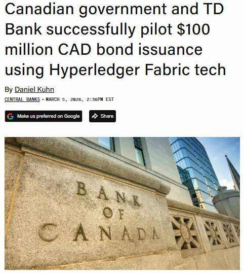🚨속보: 캐나다, 온체인 채권 발행 시범 운영 시작. 10년 전에도 이런 얘기가 나왔던 게 기억나네요. "사마라는 2016년 캐나다 중앙은행이 시작한 재스퍼 프로젝트의 결과를 바탕으로 구축되었습니다." 아직 초기 단계입니다.