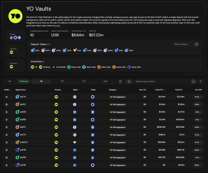 이 거북이들은 정말 빨리 움직여요. 💨 @turtledotxyz 계정 사용자들은 이미 yoVaults에 8백만 달러 이상을 예치했습니다. 1,000마리가 넘는 거북이 영웅들이 이더리움, 아비트럼(Arbitrum), 베이스 플랫폼으로 이동하고 있으며, 터틀 클럽 회원의 신규 입금에는 추가로 2.4%의 수익률이 적용됩니다. 카우와붕가. 🐢