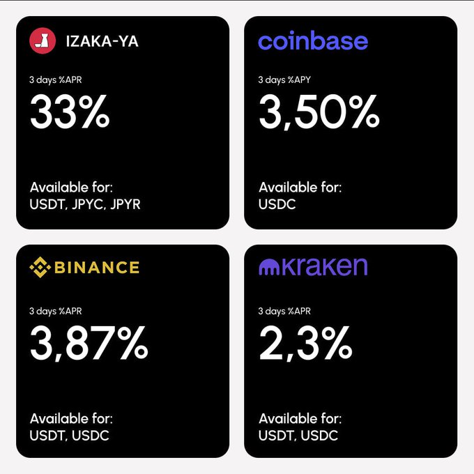 일부 스테이킹 풀은 최대 33%의 연이율(USDT, JPYC, JPYR)을 제공하는데, 이는 많은 중앙거래소(CEX)보다 훨씬 높은 수치입니다.