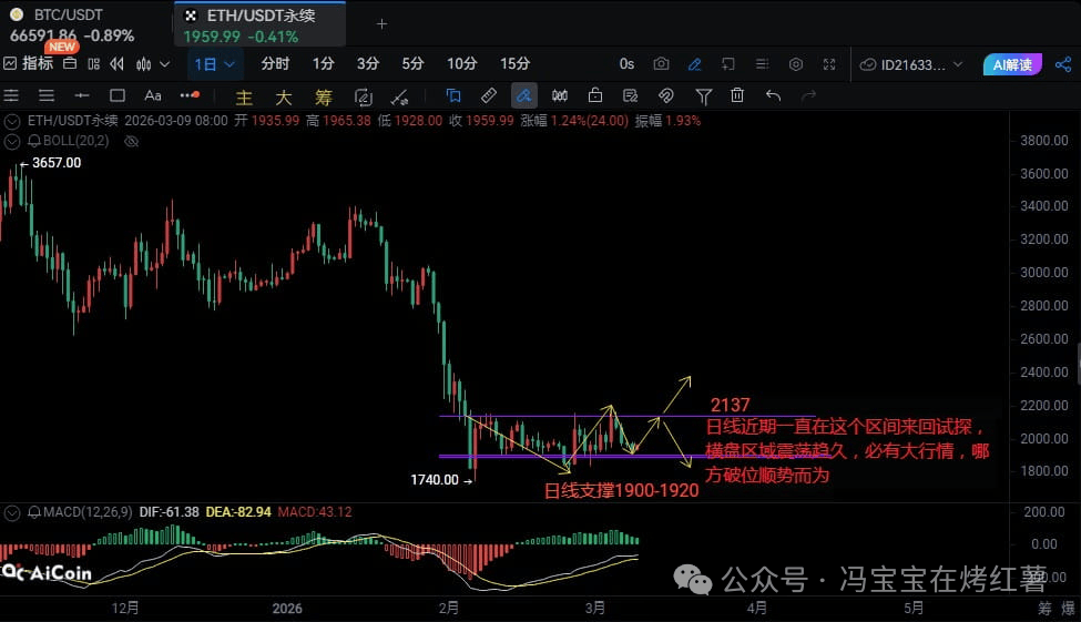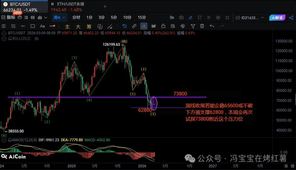 비트코인 가격은 현재 약 66,200 부근에 있습니다. 주간 차트에서 65,600 이상을 유지하고 강력한 지지선인 62,800을 하향 돌파하지 않는 한, 이번 주에 73,800 저항선을 테스트할 가능성이 있습니다. 만약 62,800 아래로 하락한다면 공매도(Short) 지속될 것입니다. 일일 차트에서 MACD 히스토그램은 축소되고 있어 하락 모멘텀이 약화되고 있음을 나타내지만, RSI는 여전히 50 미만으로 상승 여력이 제한적임을 시사합니다.