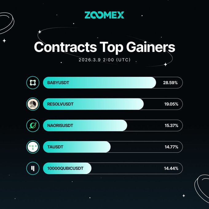📊 Zoomex 선물거래 최고 상승 종목 (3월 9일 | 02:00 UTC)
