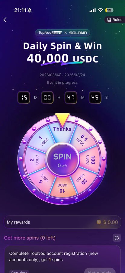 - 차세대 RWA 지갑인 TopNod가 Solana와 협력하여 무료 스핀 이벤트를 진행합니다. USDC를 지갑으로 바로 받으세요!