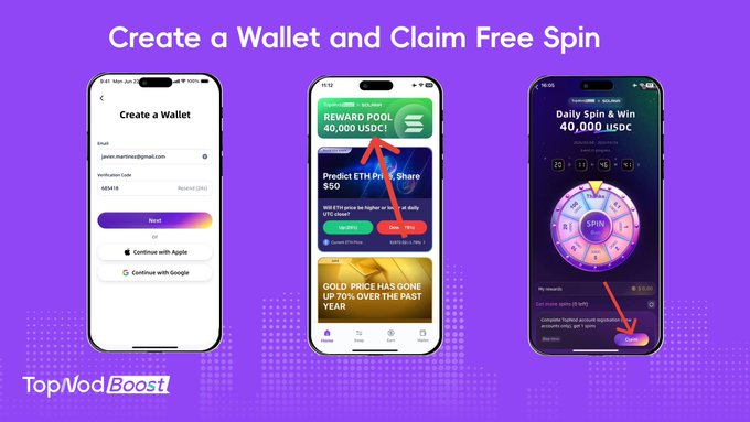 $USDC를 즉시 지갑으로 받을 수 있는 에어드롭: @Top_nod & Solana와 함께하는 40,000 USDC 풀 당첨 기회!