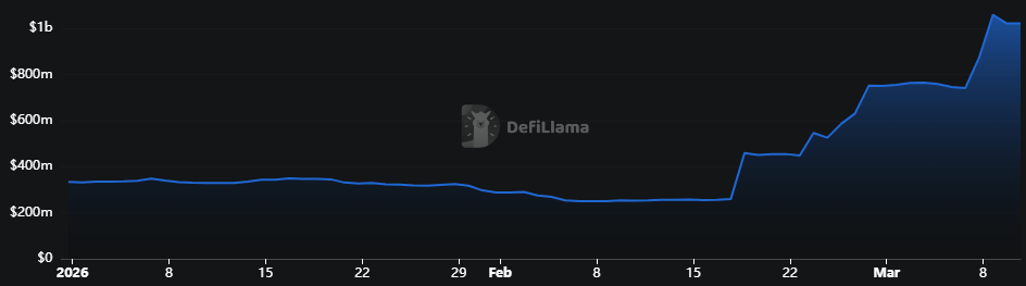 이러한 급증세는 탈중앙화 금융(DeFi) 최대 대출 프로토콜 인 아베(AAVE) 2월 중순 맨틀(Mantle) 에 출시된 데 따른 것입니다. 현재 맨틀(Mantle) 의 아베(AAVE) 총 대출 및 차입 시장 규모가 12억 달러를 넘어섰습니다.