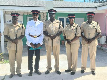캣 아일랜드 지구 소속 경찰관들과 길버트 켐프 섬 행정관, 정부 관계자, 그리고 일반 시민들이 뉴 바이트 정부 청사에서 열린 국기 게양식에 참석했습니다.