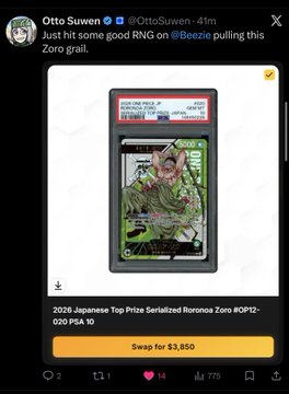 @Beezie에서 가장 운 좋은 사람이 방금 나타났습니다. @OttoSuwen이 골드 클로에서 가장 비싼 카드 3장을 뽑았습니다. $15,000 USD를 순식간에 손에 넣었네요.