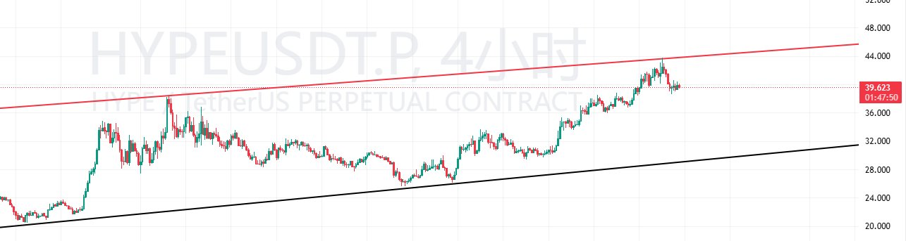 HYPE는 최근 급격한 상승세를 보이며 꾸준한 상승 추세를 이어왔습니다. 그러나 현재 상단 저항선에서 돌파에 실패하고 있습니다. 일봉 차트에서도 상승 모멘텀이 약화되어 고점 형성 및 조정 가능성을 시사하고 있습니다. 주목해야 할 첫 번째 지지선은 36U이며, 32U 부근에서 강력한 지지를 기대할 수 있습니다.