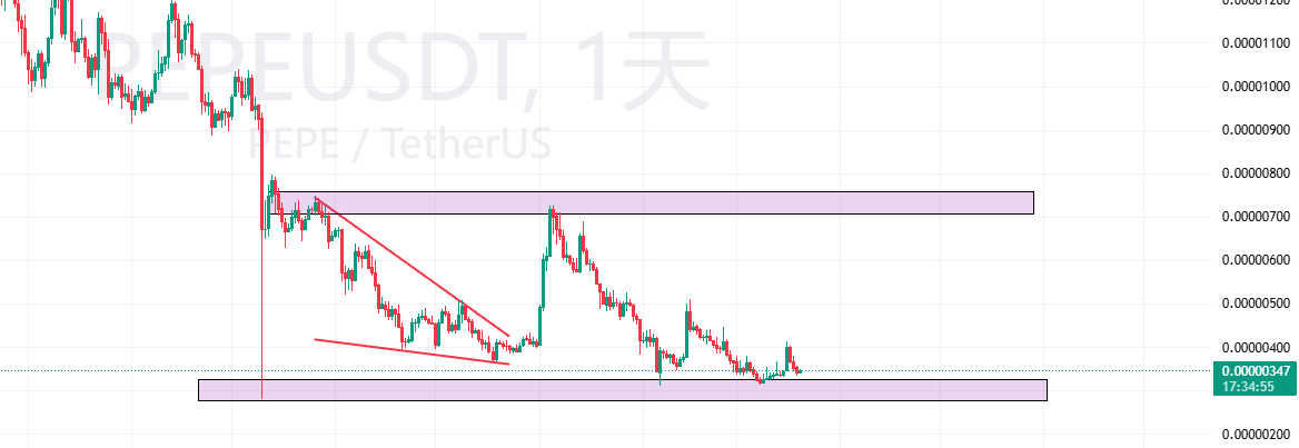 한동안 PEPE를 확인하지 않았는데, 고점에서 급락했고 거래량도 정체 상태입니다. 현재 가격은 0.30~0.28 부근에서 지지선을 형성하며 새로운 일일 최저가에 근접하고 있습니다. 이 지지선이 유지된다면 과매도 반등 가능성이 높습니다. 제가 이전에 예측했던 상승 관점 쐐기형 패턴도 완벽하게 맞아떨어졌는데, 반등 고점이 쐐기형 패턴의 시작점과 정확히 일치했습니다. 이는 매우 전형적인 패턴입니다. 현재 이러한 유형의 코인들은 일반적으로 큰 폭으로 하락했으며, 많은 코인들이 심각한 횡보세를 보이거나 이미 손실을 줄이기 위해 매도 포지션을 청산했습니다. 이렇게 심각하게 저평가된 코인은 절대 숏(Short) 하지 마세요. 주요 시장 참여자들이 언제든 시장을 조작할 수 있습니다.