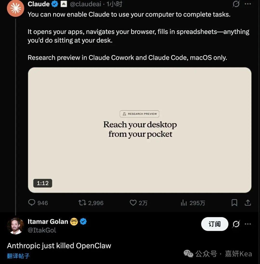 소셜 미디어에서 OpenClaw에 대한 이야기를 하는 대신, 유사한 요구 사항을 Claude의 데스크톱 기능, 원격 일정 관리 기능 및 워크플로 시스템에 직접 통합합니다 .