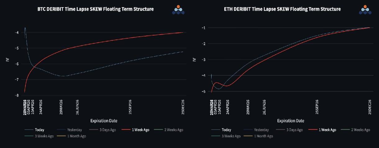 단기적인 왜곡은 거시 경제 뉴스 및 가격 변동에 민감한 반면, 장기 풋옵션의 경우 특히 비트코인 (비트코인(BTC) 에서 상대적으로 매수세가 강합니다. 이는 기관 투자자들이 중간 가격 구간에서 헤지 수요를 지속하고 있지만, 투기꾼들은 단기 가격 구간을 이용해 돌파 매매를 시도하고 있음을 나타냅니다.