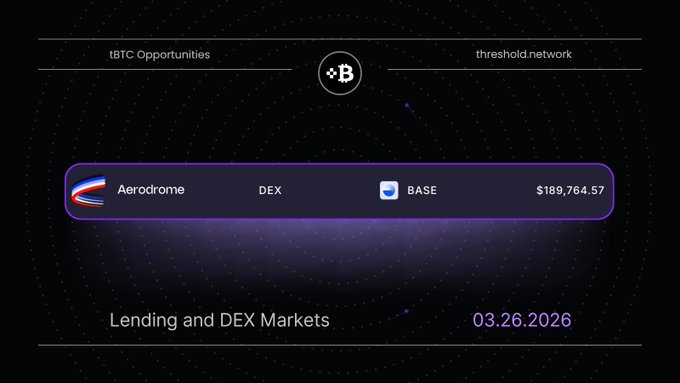 4/5 @Aerodrome은 Total Value Locked(TVL) 189,764.57달러로 아베(AAVE) 와 Curve보다는 작지만 여전히 의미 있는 규모입니다. Base 플랫폼에서 유동성 허브는 종종 관심과 거래 흐름이 집중될 곳을 예측하는 데 중요한 역할을 합니다. tBTC가 여기에 나타나는 것은 블록체인 상의 실제 거래 활동과 연결되어 있음을 보여주며, 참여자들에게 비트코인(BTC) 유동성이 형성되는 위치를 알려주는 또 다른 신호가 됩니다.