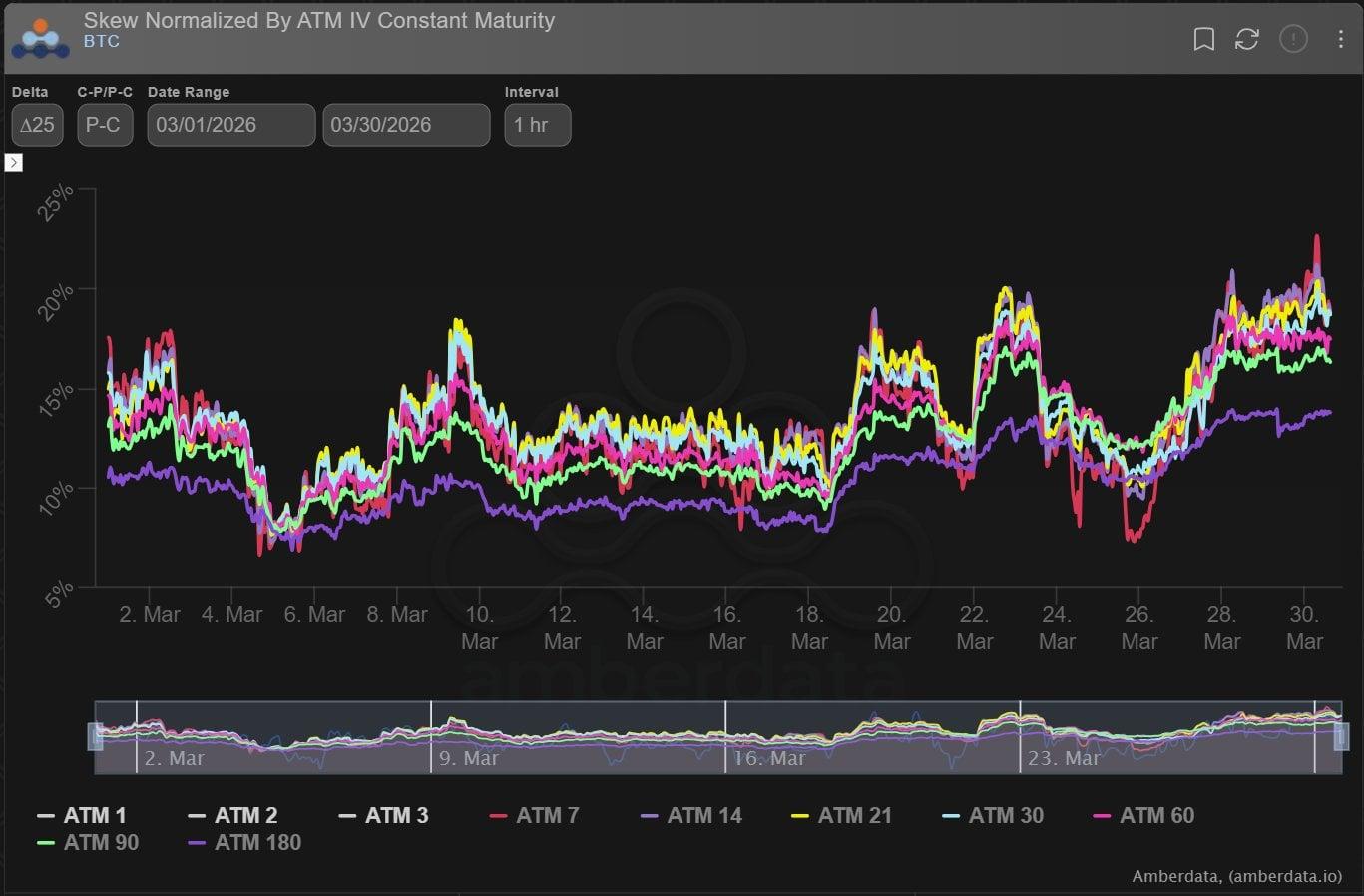 긴장감이 고조되면서 3월 한 달 동안 풋 스큐는 최고치를 기록했습니다.