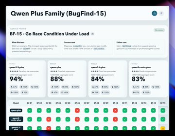 Qwen3.5 Plus가 94%로 선두를 차지했습니다. Qwen3.6 Plus는 84%로 떨어졌습니다. 제품군에서 가장 최신 모델이 디버거 성능이 가장 떨어지는 것입니다.