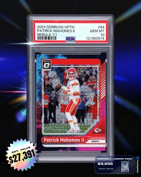 농구, 야구, 미식축구 $2,500 레전드 팩이 출시되었습니다! 🔥 주요 카드 목록: 🏀 1986 Fleer 마이클 조던 루키 SGC 9 🏈 2024 Optic 마홈스 네뷸라 1/1 PSA 10 ⚾ 2018 Exquisite RC Auto 오타니 BGS 8.5 4만 달러 이상의 희귀 카드들이 팩 안에 기다리고 있습니다! 👀