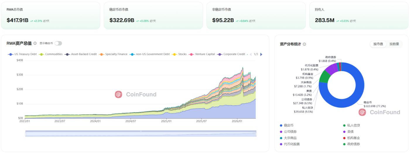 - RWA(비스테이블코인)의 총 시가 시총 오늘 952억 2,300만 달러로, 지난 24시간 동안 13억 3,900만 달러 증가했습니다. 이는 FDIC의 토큰화된 예금 프레임 공식 시행과 미국과 이란 간의 2주간의 휴전 합의로 인한 미국국채 10bp 하락에 영향을 받았습니다. 토큰화된 미국 미국국채 상품의 매력이 회복되고, 사모 대출이 지속적인 성장세를 보이며, FDIC는 준비금을 1:1 비율로 전액 지원하고 매월 공개해야 한다고 명확히 밝혔고, 블랙록의 BUIDL은 기관 투자 자금을 계속해서 유치하고 있습니다. 규제 명확화는 전통적인 자본의 유입을 가속화하고 있습니다. 전반적으로 RWA 부문은 제도화 속도가 빨라지고 있으며, 이는 RWA가 단기적인 지정학적 리스크 에 영향을 받지 않는 주류 투자 방향으로 자리 잡고 있음을 시사합니다. (출처: ME)