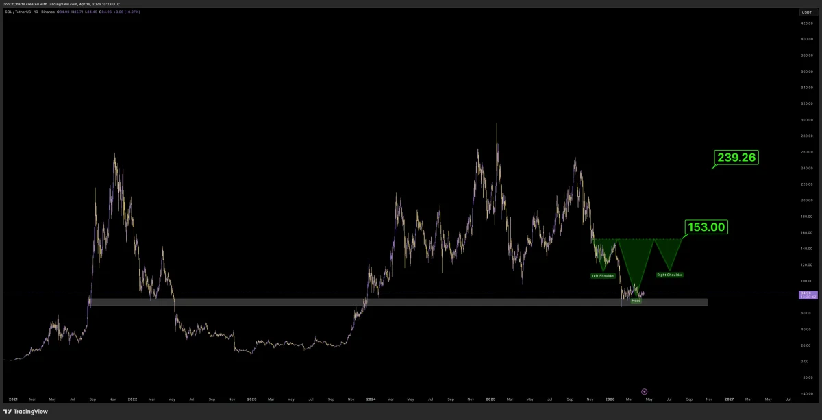 DonWedge는 상승 전망을 강화하는 더 광범위한 패턴을 강조합니다. 솔라나(Solana) 장기간의 하락 추세 이후 거시적인 기반을 구축하는 것으로 보입니다.