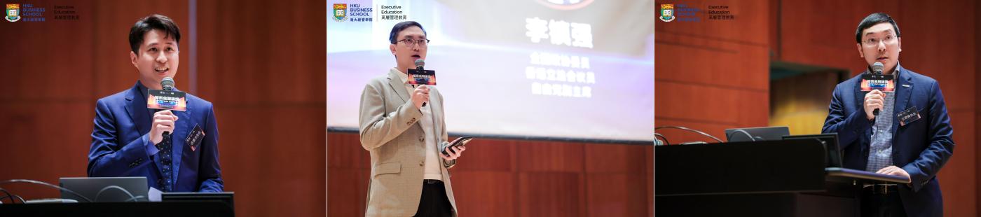 사진 왼쪽부터 션하오제(전국인민대표대회 대표 겸 션앤웡 법률사무소 대표), 리전창(전국인민정치협상회의 위원, 홍콩 입법회 의원, 자유당 부주석), 왕쥔순(인베스트홍콩 핀테크 부문 수석 부사장)입니다.