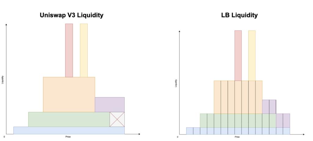 거래량이 가장 많은 AMM DEX인 Uniswap V3는 중앙 집중식 유동성 장부(CLB) 개념을 도입합니다. 이 기능을 통해 유동성 공급자(LP)는 특정 가격 범위 내에서 자금을 집중할 수 있으므로 유동성 장부가 심화되고 AMM 풀의 유동성을 더 잘 활용할 수 있습니다. 최근 Trader Joe는 유동성 공급자(LP)에게 더 큰 유연성을 제공하기 위해 중앙 집중식 유동성 원장(CLB)을 기반으로 한 가격대를 도입했습니다.