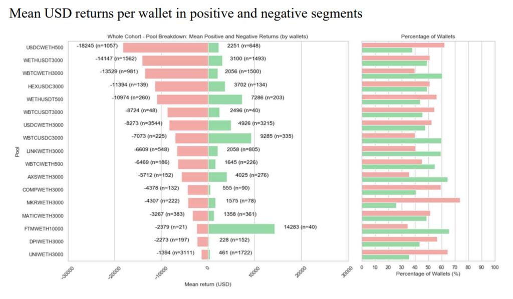 유동성 공급자는 유동성의 주요 소스로서 암호자산 쌍(또는 그룹)을 이러한 풀에 예치하고 그 대가로 거래 수수료와 보상 토큰을 얻을 것으로 기대합니다. 그러나 Uniswap V3의 비영구적 손실에 대한 연구에 따르면 Uniswap V3(주간 거래량이 40억 달러가 넘는 가장 큰 DEX)의 유동성 공급자 중 절반이 마이너스 수익을 창출했으며 승리한 절반의 대다수가 인플레이션을 감안하여 형편없는 성과를 보인 것으로 나타났습니다. 모두 비영구적 손실 때문입니다.