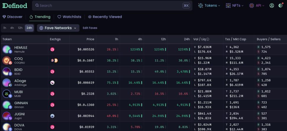 첫째, 덱스스크리너, 정의, 덱스툴, ave.ai 등 시장 웹사이트는 지속적으로 거래 핫리스트를 업데이트하고 있으며 거래량이 많고 증가폭이 큰 프로젝트의 순위가 높으며 거래량이 있어야만 미래가 있습니다.