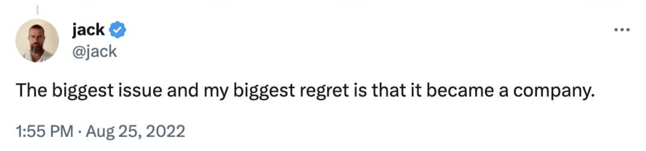 덧붙여 말하자면, 트위터가 프로토콜이 아닌 회사가 되어버린 사실이 잭 도시에 계속해서 부담으로 작용하는 것 같습니다.