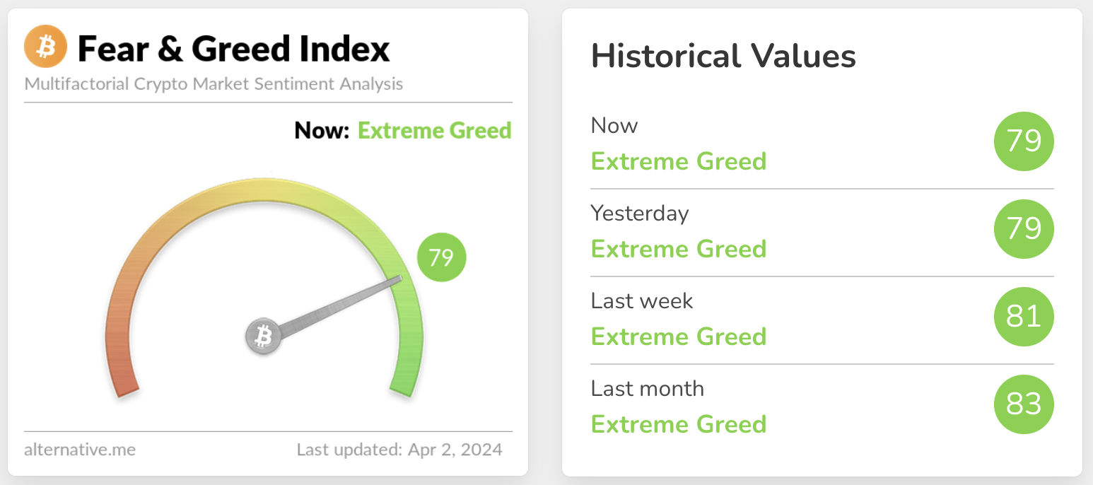 광범위한 하락에도 불구하고 24시간 동안의 손실은 대부분 5%~10% 범위였으며, 전반적인 강세 심리는 영향을 받지 않았습니다. Alternative 데이터에 따르면, 암호화폐 패닉 및 탐욕 지수는 지난주 81에 비해 현재 79로, 시장은 여전히 극도로 탐욕스러운 분위기이며 냉각에는 변화가 없는 것으로 나타났습니다.