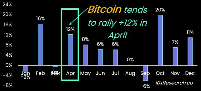 매트릭스포트의 애널리스트 마르쿠스 틸렌도 3월 29일 게시글에서 비트코인이 7개월 연속 급등했으며 4월에도 7만 달러에서 12% 상승한 8만 4천 달러까지 오를 수 있다고 주장하며 4월에 대한 강세 전망을 전했습니다.